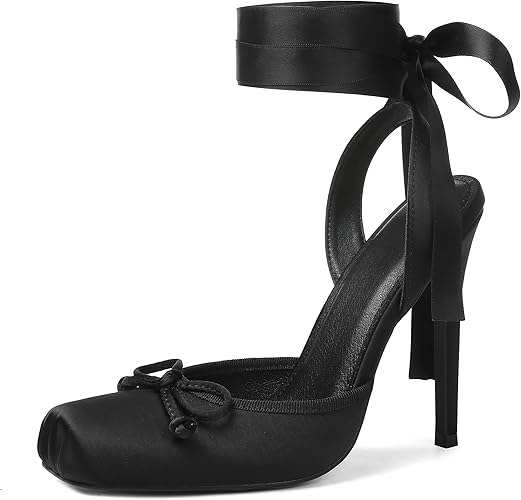 Celbreez Ballet Heels Satin Stiletto Heels for Women Close Square Toe