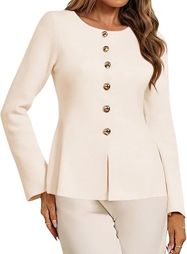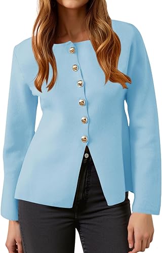 Lightweight Long Sleeve Knit Tops Business Casual Round Neck Fitted Jacket.