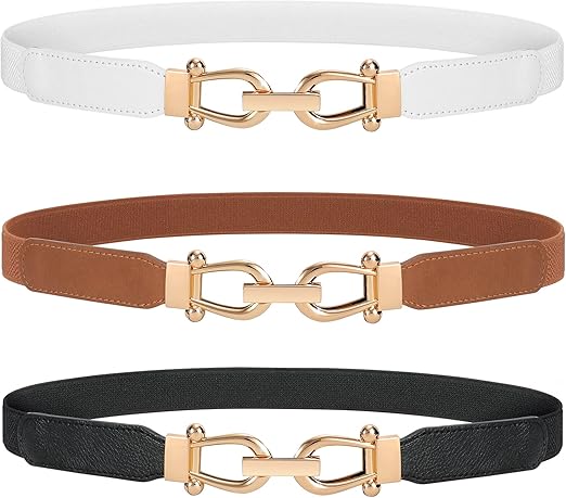 - Stretch Ladies Waist Belt — This skinny waist belt is made of great elastic band, gold metal buckle and quality leather.