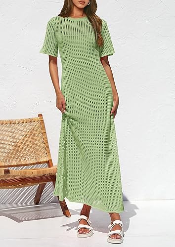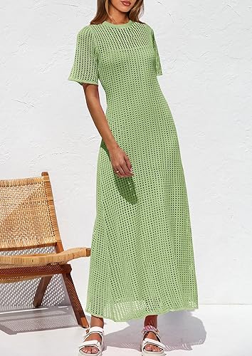 Resort Maxi Dresses Beach Short Sleeve Hollow Out Sundress