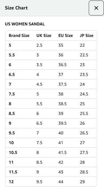 | Size 1 | 5, 5.5, 6, 7, 7.5, 8, 8.5, 9, 10 |