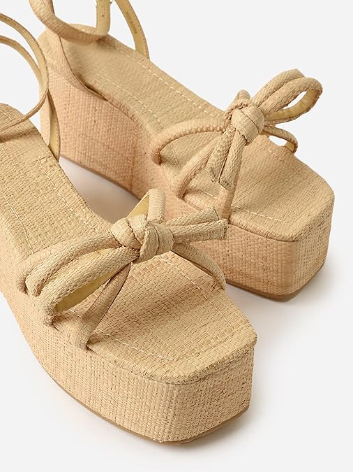 - This women’s bow woven platform sandals are crafted from natural raffia fabric to ensure comfort, breathability and eco-friendliness.