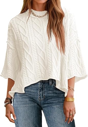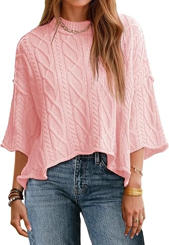 - CHIC STYLE: Crop top sweaters for women; Oversized sweater; 3/4 sleeve womens tops; Cable knit sweater; Long sleeve going out tops; Fall fashion clothes; Casual tops for women.