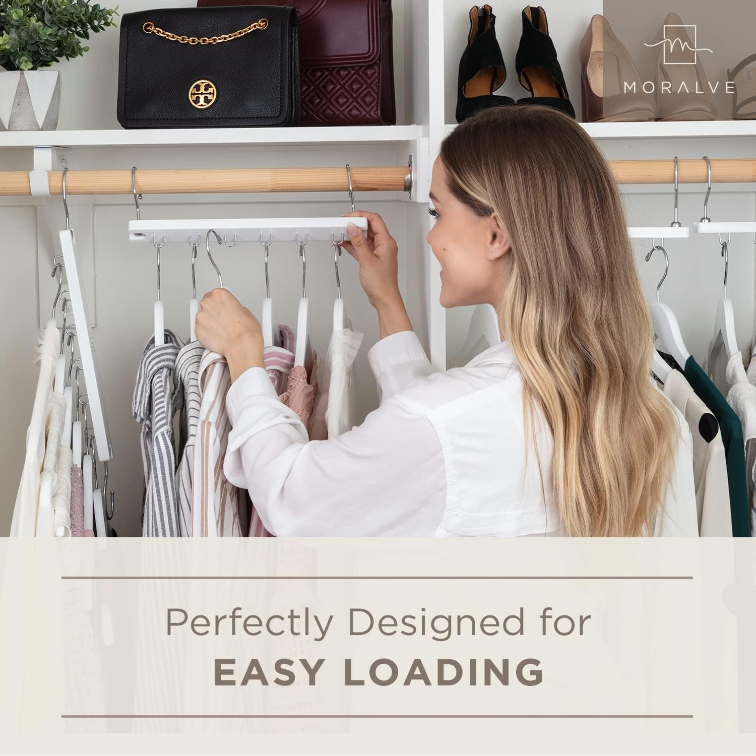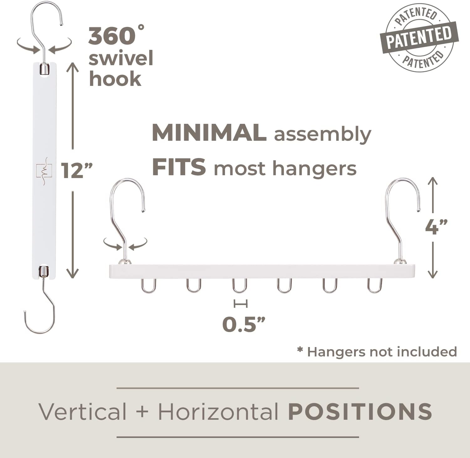 - PATENTED 360 SWIVEL DESIGN – Load or unloading your items from this clothing hanger organizer is easy thanks to our 360 degree swivel hook.