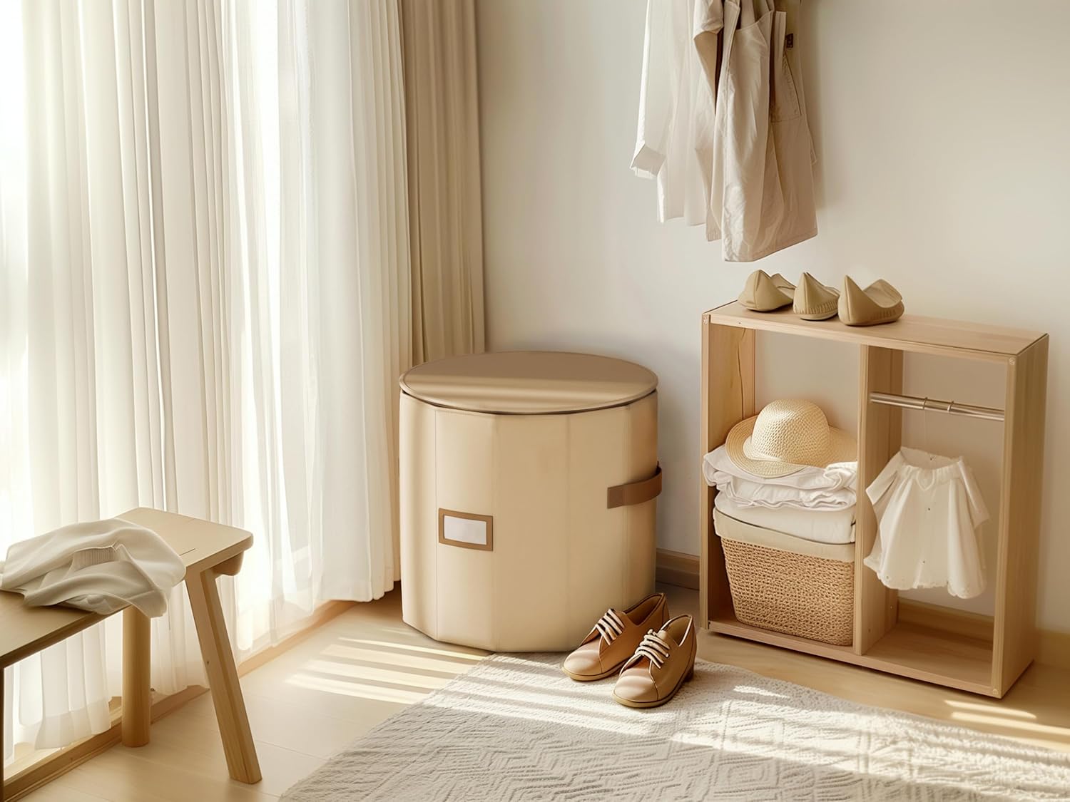 Storage Organizer with Removable Dividers, Rectangular Compartment, Foldable, Beige, 1-Pack