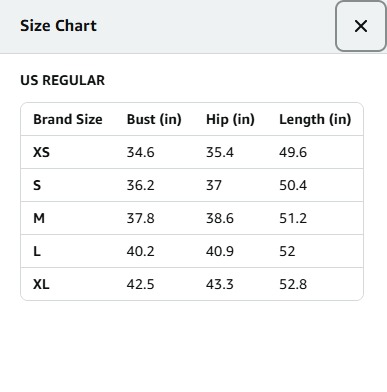 | Size | X-Small, Small, Medium, Large, X-Large |