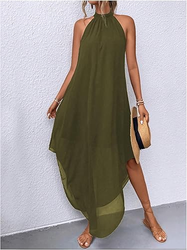 Halter Flowy Sleeveless Asymmetrical Boho Maxi.