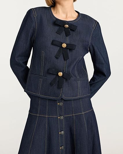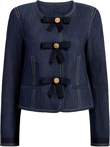 Button Down Casul Slim Fit Y2k Bow Short Denim Jackets.